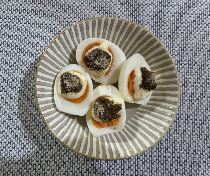ごはんが止まらない!「のりクロたらこ × ゆでたまご」