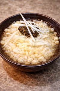 海苔とゆず胡椒のぴりっとしたアクセントのある風味がお出汁と合わさって、食欲が刺激されます。